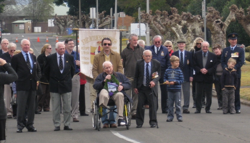 Eric Baker. Right-Centre (with cane): Eric marched out from Richmond as an Aircraftman AC1, skilled in radio operation, and returned from the war as a Warrant Officer.