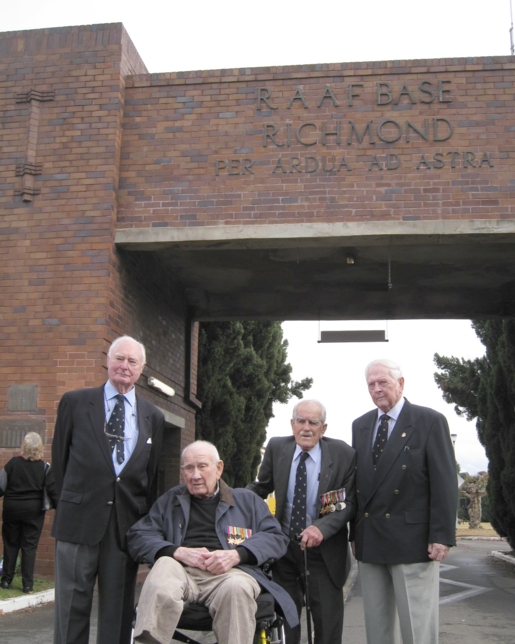 Gordon Steege. Far left (in blue suit): Gordon marched out of Richmond as a Flight Lieutenant and quickly became an ace fighter pilot in the Egyptian desert, claiming seven enemy aircraft destroyed whilst flying Gladiator and Hurricane aircraft with 3 Squadron, and scoring one further victory after he was promoted to command 450 Squadron. Gordon was awarded the Distinguished Service Order and Distinguished Flying Cross and finished his Air Force career in 1972 as an Air Commodore.