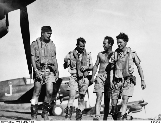 1942. Kittyhawk fighter pilots of No. 75 Squadron RAAF, during a