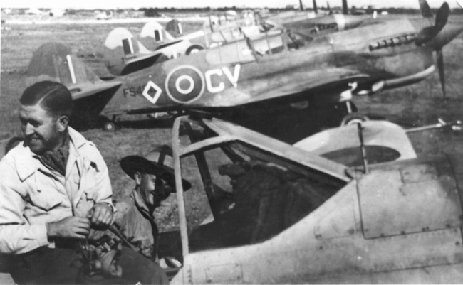 I'm not sure when the photo of this machine, CV-J FS433 was taken. However as John Howell-Price the pilot had from memory left the Sqn by the time they moved to Italy, it is probably Sicily. Unusual Code letters, the 'CV' being very 'fat' and the 'J' in a very unusual style.