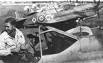 The first photograph of FS482 was taken at Grottaglie near Taranto on the heel of Italy after 3 Sqn flew their aircraft over from Sicily (thus the drop tank which was required for the long trip). The other photo shows CV-◊ FS482 in the background of Arthur Dawkins sitting in the cockpit of CV-B at Foggia in Nov 1943.Note - A number of publications have claimed that FS482 carried female artwork with the name 'Fifi' on the port nose. This is incorrect as the original source for this (Aircam Publications) mixed FS482 up with a 450 Sqn P-40N OK-◊ which actually carried the artwork. Ahhhh isn't plagiarism (the art of just copying someone else's work due to lack of knowledge and laziness to do some original research yourself) wonderful !!