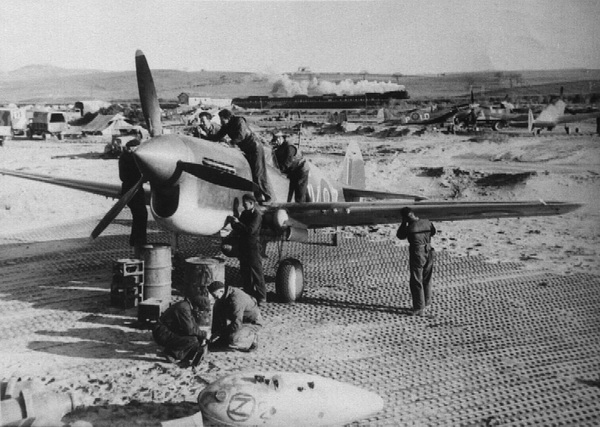 Two photos of CV-Z FS407 in the Desert scheme. First photo taken at Foggia Nov 1943. The 2nd appears to be taken at Cutella, the sand dunes that the strip was built on being very visible.