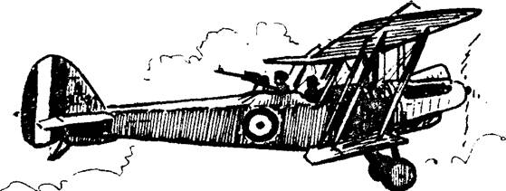 Three hours went by and the patrol ended. We dropped the bombs and I fired a drum from the Lewis along a road. Geoff made a climbing turn over Bellenglise, and headed for home. Then suddenly in the blue sky above us there appeared a flight of hostile aircraft; five Pfalz scouts in vee-formation, with their wings glistening in the afternoon sunshine. I swung the Lewis in the mounting and fired a burst in their direction. They came diving at us, however, as if they meant business. They had the speed on us and were soon over our tail. Geoff gave a reassuring pat on my shoulder, then turned and settled down to the controls.