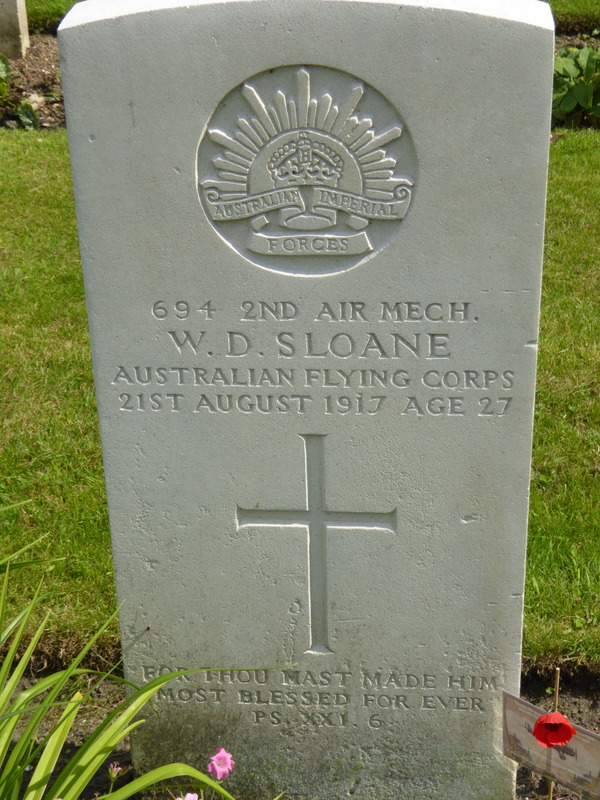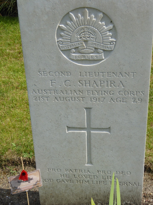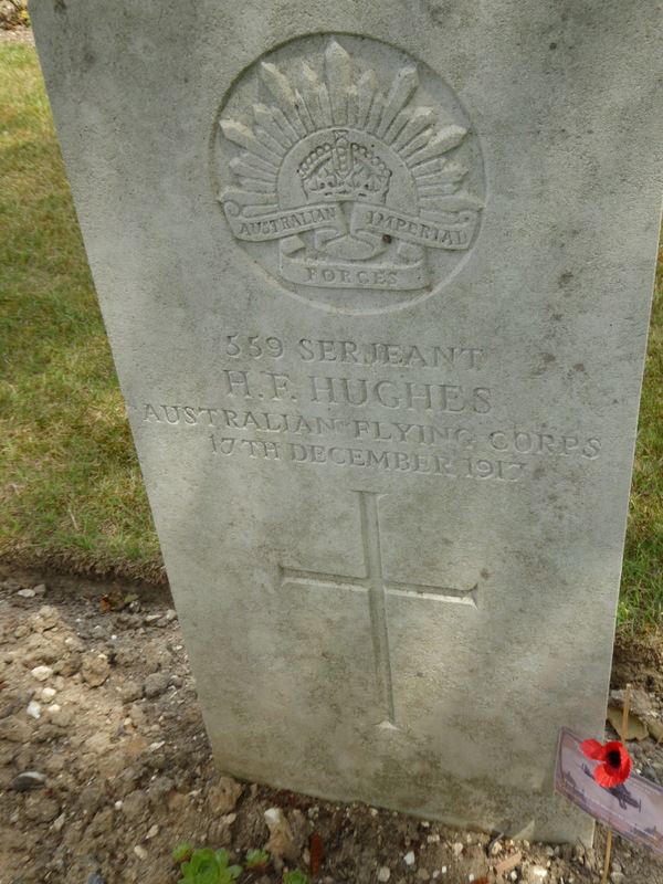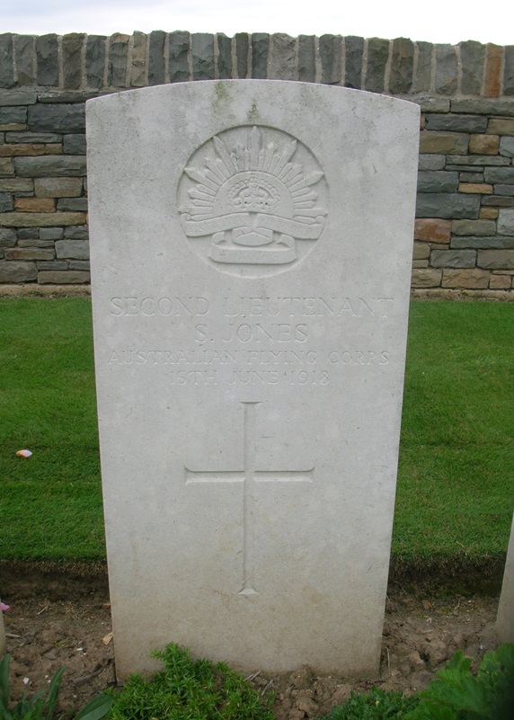 Sydney Jones came from Normanton, Queensland, and was a 22 year old Clerk, a member of the RAN Reserve and a veteran of the Australian Naval & Military Expeditionary Force’s 1914 operations in New Guinea, when he joined the 1st Australian General Hospital, Australian Army Medical Corps, in Brisbane on 11 May 1915. On 12 June he departed from Brisbane on HMAT A63 Karoola. He was an Acting Sergeant in the AAMC in England when, after a period of illness, he transferred to the Australian Army Pay Corps in April 1917 before applying for pilot training in November. He graduated as a pilot and was commissioned in February 1918. After further training, he was posted to France in May and joined 3AFC on 1 June.He was killed in an aircraft accident at Flesselles only two weeks later, on 15 June 1918, while flying RE8 A3817 with Observer 2Lt S. A. LORAM, who was also killed. The aircraft was making a turn over the village when the engine failed and it “got into a flat spin” and crashed among buildings.