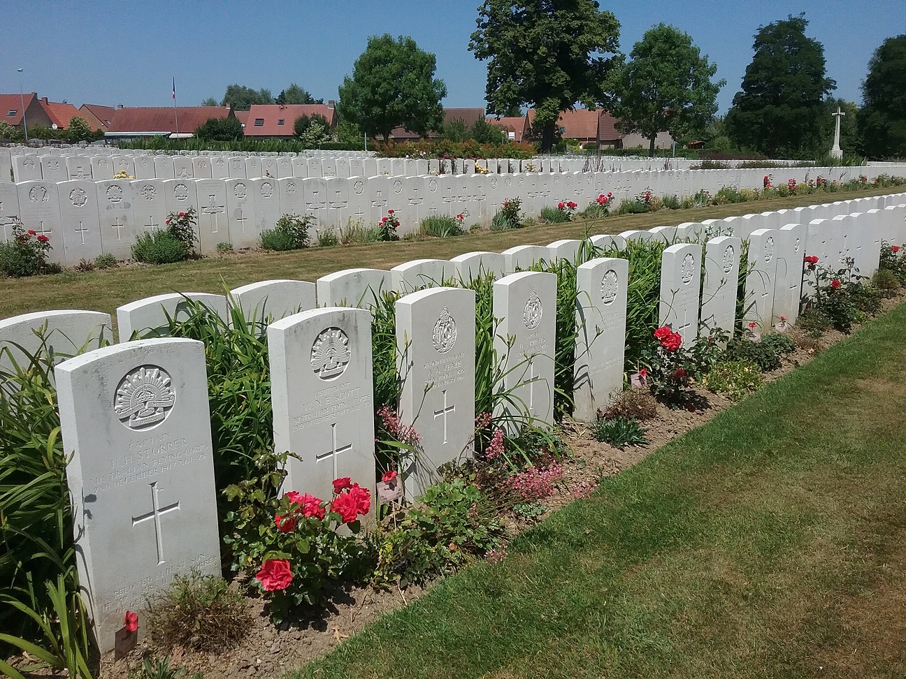These memorials are now found in such peaceful locations that it is difficult to imagine the devastation, the noise, the dust and the horror that once prevailed there. Beautiful gardens now stand to the credit of these men. Their memorials are maintained in perpetuity by the Commonwealth War Graves Commission, to honour their sacrifice.