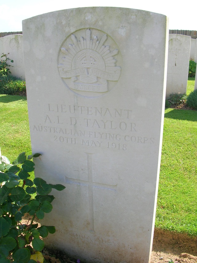 Lt A. L. D. Taylor is buried in Grave II B 16 at Vignacourt British Cemetery, France.