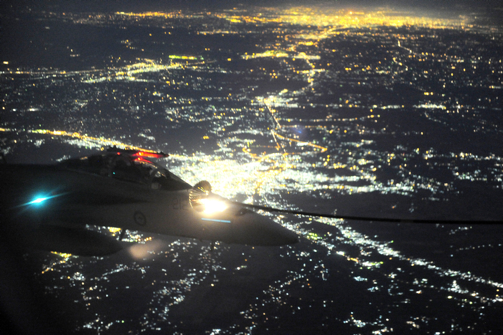 Night refuelling from the tanker.