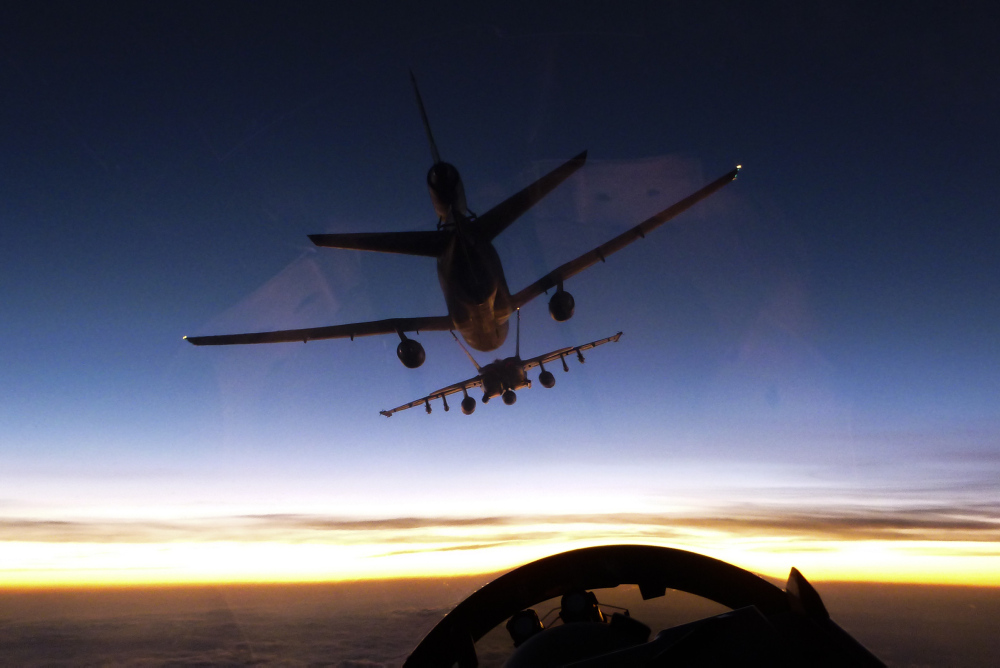 Yeah, it's massive support. Without the air-to-air refuelling tankers, this operation just isn't possible. So every hour or so we're taking a drink to top-up the tanks and perform our "on task" duties.