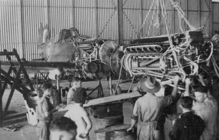 was still the odd "prang". The aircraft on jacks in this picture is Tomahawk AM386,