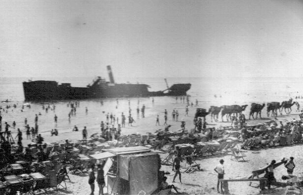 (A sabotaged Jewish refugee ship makes a nice breakwater!