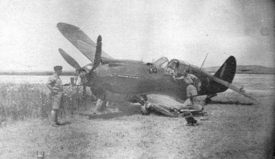 Rawlinson found that the aircraft would became uncontrollable if he slowed down to the speed normally used for landing. Nonetheless he bravely decided to attempt a high-speed touchdown back at Rayak to save his aircraft. He succeeded in getting down safely, but just before he came to a halt he ran off the end of the runway and the Tomahawk tipped up on its nose into a ditch. (All of this damage proved repairable.)