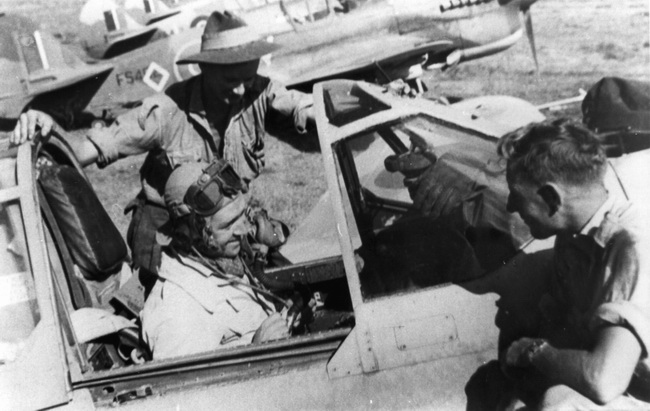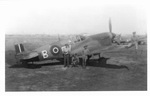 The first photograph of FS449 was taken in Sicily when it was newly-delivered and awaiting allotment to a pilot (thus the lack of individual letter). The other photo shows Arthur Dawkins sitting in the cockpit of CV-B at Foggia in Nov 1943. Behind him is CV-◊ FS482 (see drawing) in its Temperate scheme.