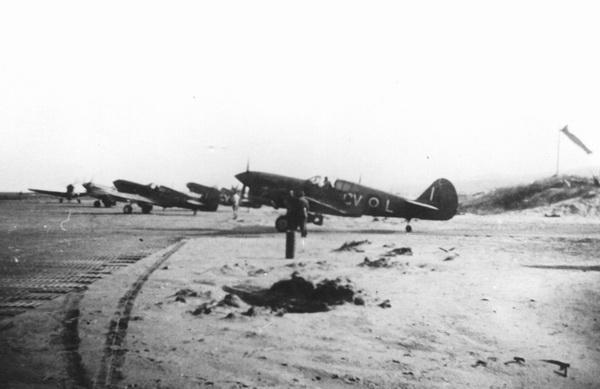 Two photos of CV-L FS420 the aircraft flown by F/Lt Jack Doyle. This was another long serving machine, Jack flying it from 21 Aug 43 till 22 Apr 1944. Both photos were taken at Cutella, the sand dunes that the strip was built on being once again being very visible.
