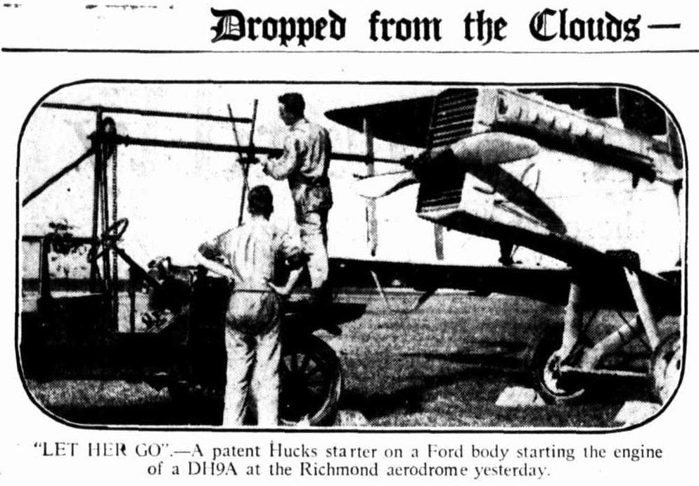 Flight-Lieut. Wackett took charge of the D.H.9a, from which his first pupil was to spring. The plane mounted to 2,000 feet. It swept out over the hangar, followed the shining ribbon of the railway line running from Richmond to Clarendon, and turned north in the direction of the mist-shrouded foothills that lead to the rampart of the Blue Mountains.