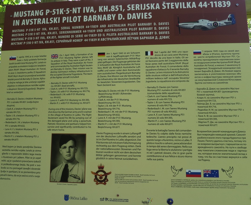 The first site is that of FLTLT David Barnaby "Barney" DAVIES, who parachuted from his Mustang near the village of Kuretno, after being hit by light flak. Barney evaded capture with the help of local Slovenian farmers and Partisans.