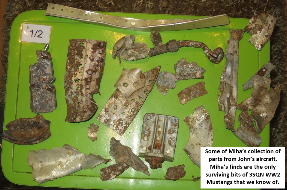 John's thrilling evasion story after he baled-out from his Mustang has been preserved in a 3SQN File in the National Archives (pages 15-16). He also received some press coverage in his home town, Perth: "One of the Last to Hear of Victory".