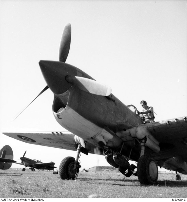 Foggia, Italy. 1943. Aircraft of No. 3 (Kittyhawk) Squadron RAAF,