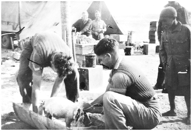 The poor little fellows had a sad end; when we were at the end of our two years of the African Campaign, we were posted back to Australia. I asked a Squadron chap if he would care for the little pigs and he said he would. After we had left for Aussie, this 'gent' sold them to the Officers’ Mess and they were killed soon after. Fresh meat was not on our menu, but I'll bet the officers enjoyed the feast!”