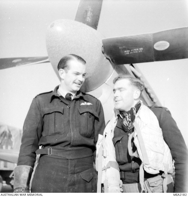 411495 Flight Lieutenant J. A. Hodgkinson DFC of Orange, NSW (left),