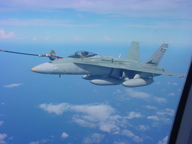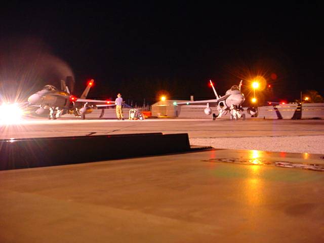 With the arrival of our advanced party a handover takeover commenced and the pilots immediately went to work getting alert certified, flying training missions and generally sorting themselves out. 77 Squadron had brought with them from Australia four F/A-18 single seat fighters to perform the task of providing air cover for the island. Once all our people had arrived on the island and the 77 Sqn guys had left for home, we got down to business immediately and commenced 24-hour ops.